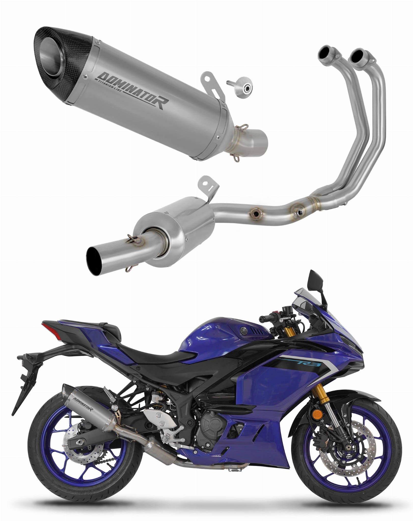 Yamaha YZF-R3 2025 - 2026 Full Exhaust System EX Collector Silencer Titanium HP8 + dB killer