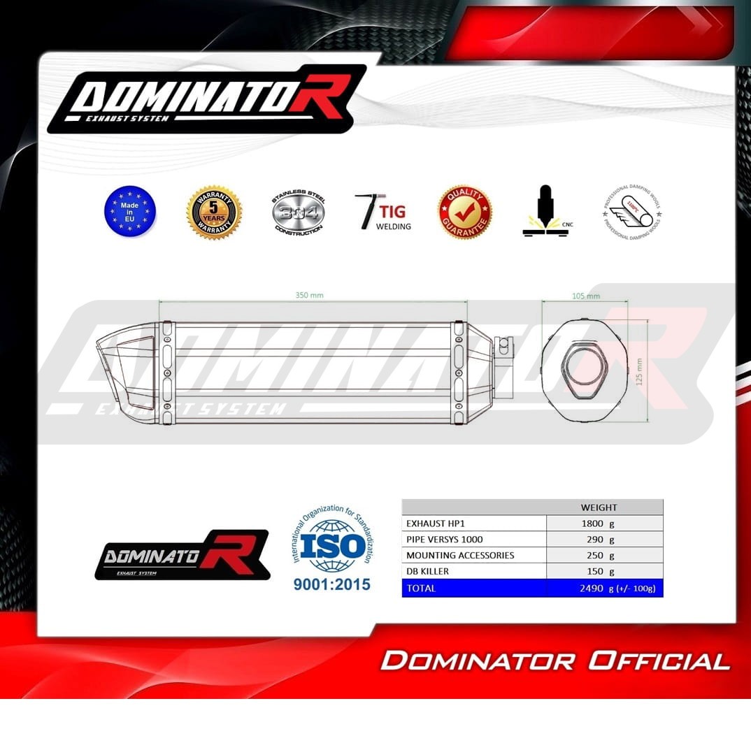 Homologué Silencieux Slip-on DOMINATOR pour KAWASAKI VERSYS 1000