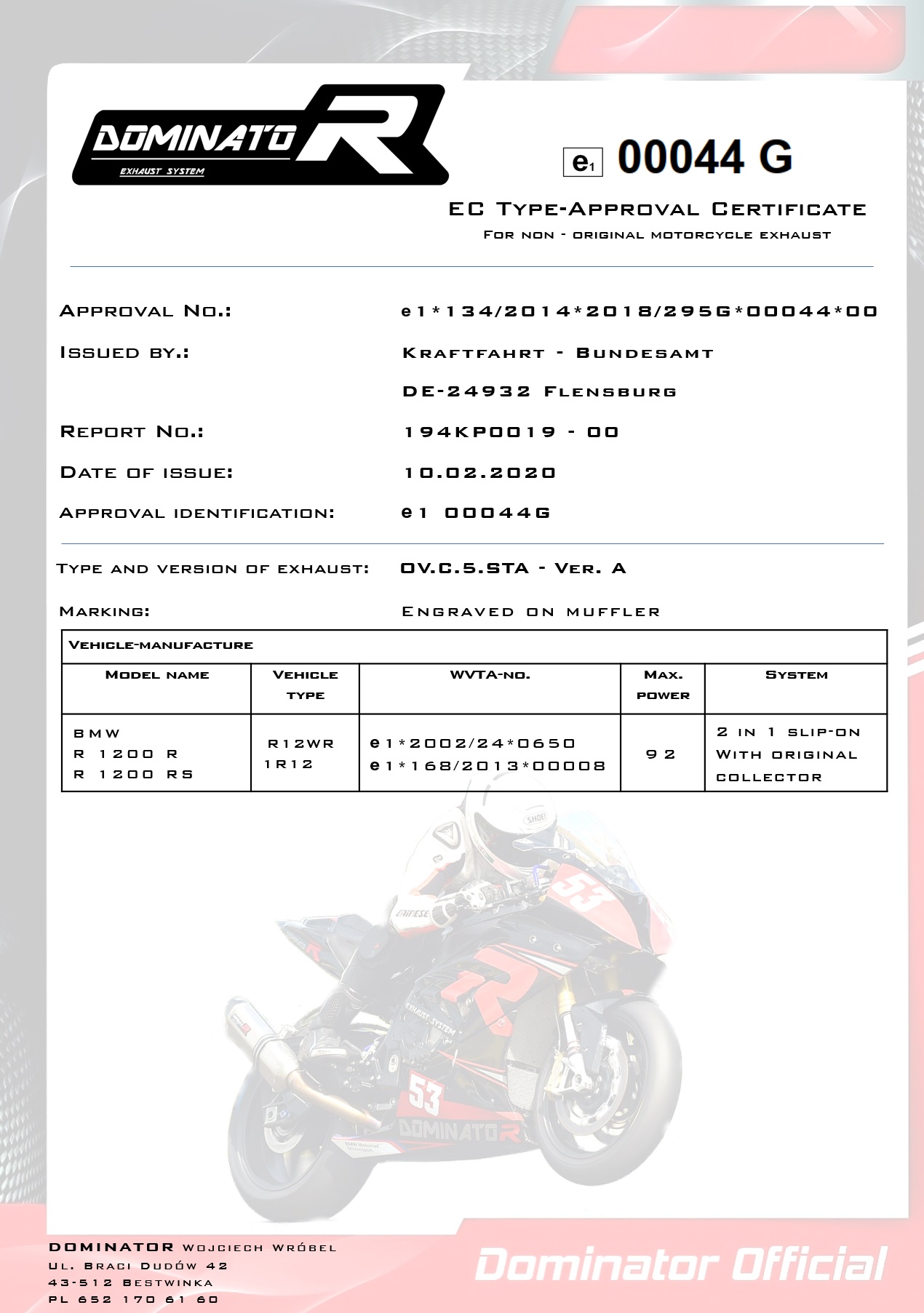 DOMINATOR Exhaust System - Fabricant polonais de systèmes d'échappement